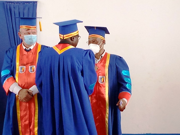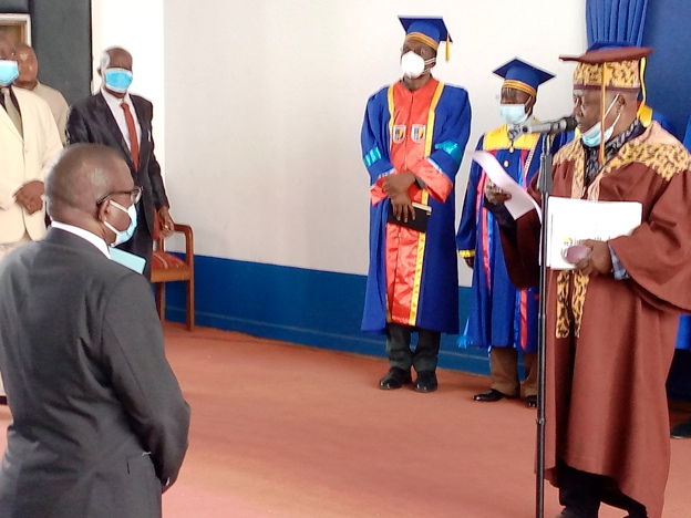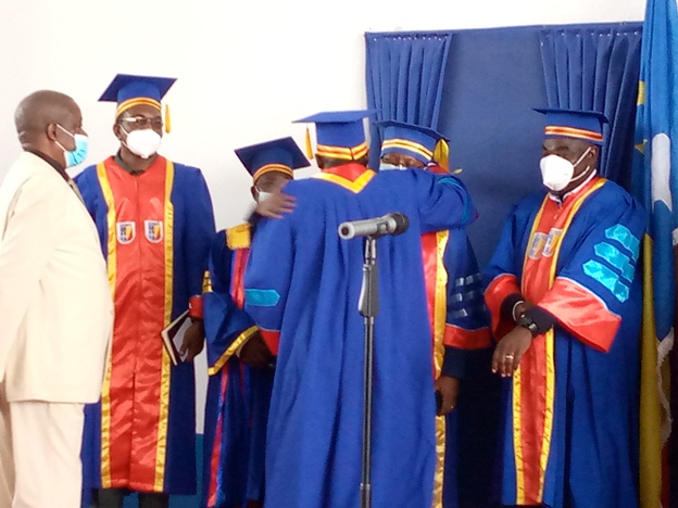 Le secrétaire général académique de l’Université de Kinshasa, le Pr Eustache Banza Nsomwe a conféré jeudi au nom du Recteur, le Professeur Jean-Marie Kayembe, le grade d’agrégé de l’enseignement supérieur en médecine, au chef de travaux, Dr Alphonse Nzomvuama Ndonga N’sungu pour avoir réussi aux épreuves de la soutenance publique d’une thèse d’agrégation en médecine.