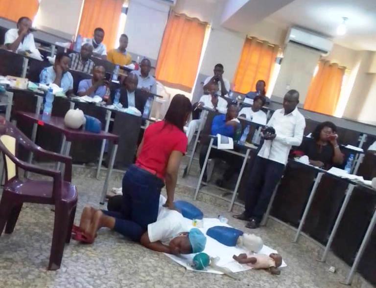 Clôture le 17 mars 2023 de la formation des infirmiers sur la prise en charge des arrêts cardio-respiratoires. La formation a été assurée par l’ONG de madame l’honorable Kompany.